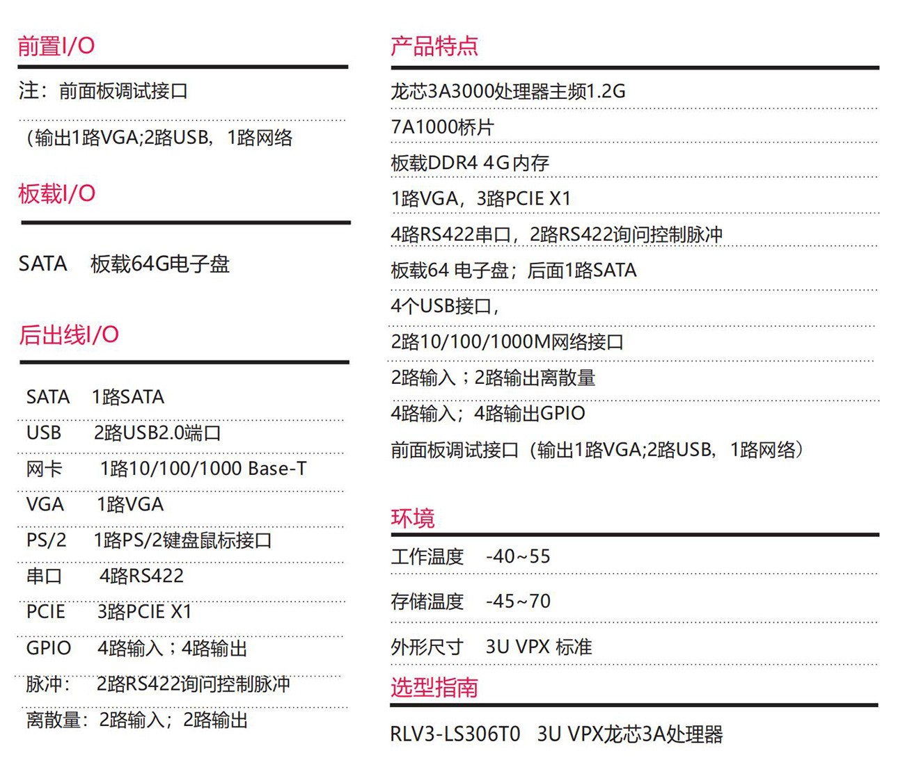 采用龍芯3A處理器按國產100%設計,3U VPX規格。具備豐富的外圍接口;設計了高效的散熱系統,可顯著提高處理器的浮點運算性能,以太網、PCIe、支持高帶寬數據傳輸,滿足視頻采集與處理、雷達和聲吶等應用對高速數據傳輸的要求。